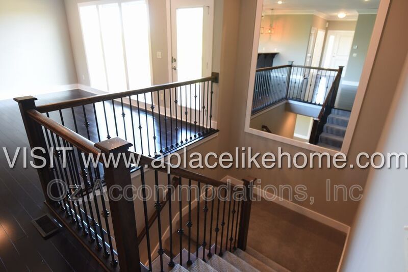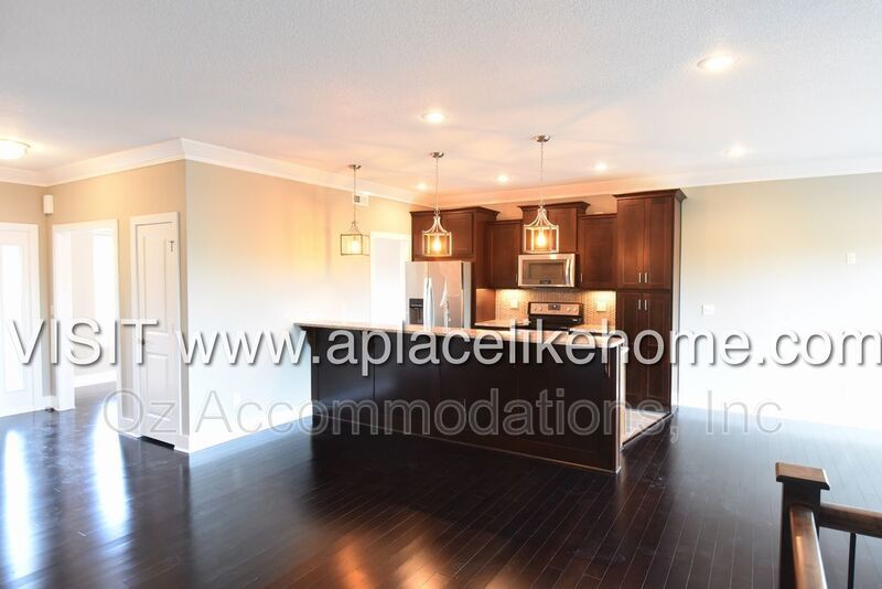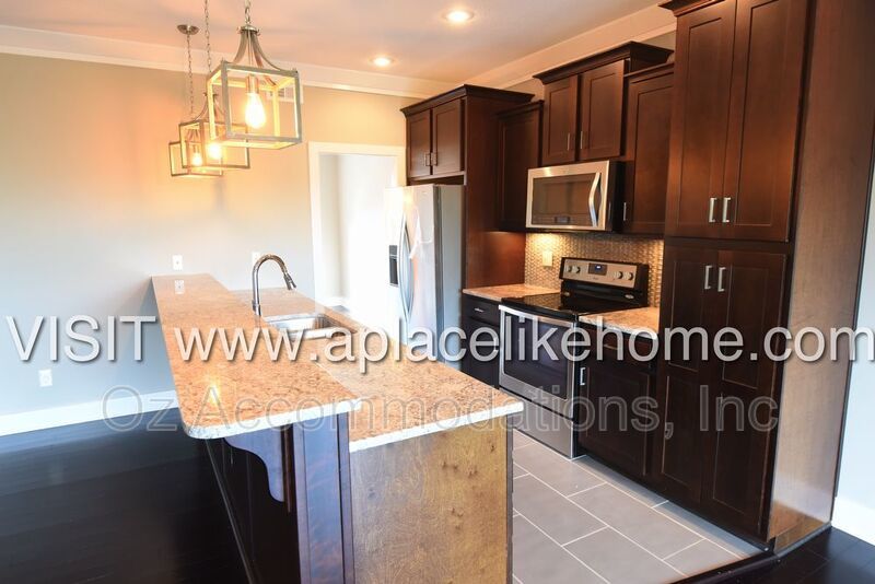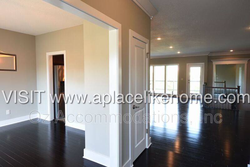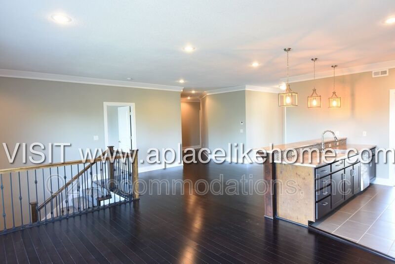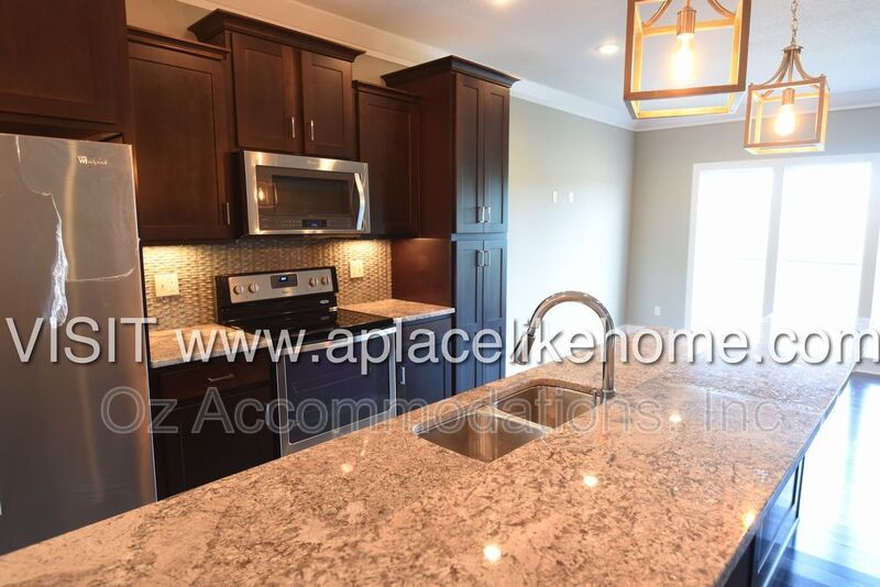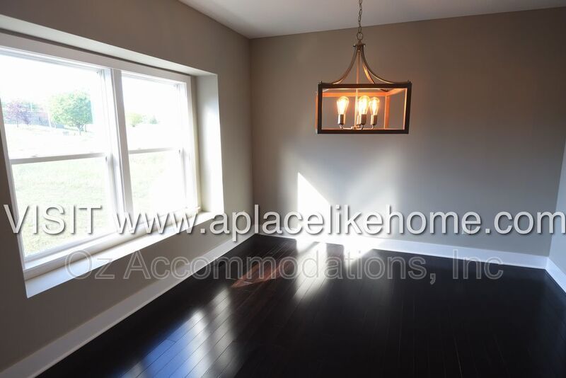 When you enter the home, you are greeted with beautiful hardwood floors. There is a dining room to the left with a large window that pours in natural light and entry to the kitchen. The kitchen is a cook's dream with granite countertops, an eating bar, dark cabinets, and all stainless steel appliances including a dishwasher, fridge, microwave, and stove. An open living room connected to the kitchen offers a great entertainment setting, The living room opens to a large deck that overlooks the lawn with green space bordering the property.