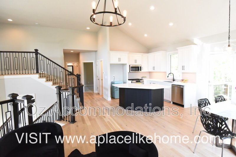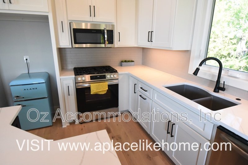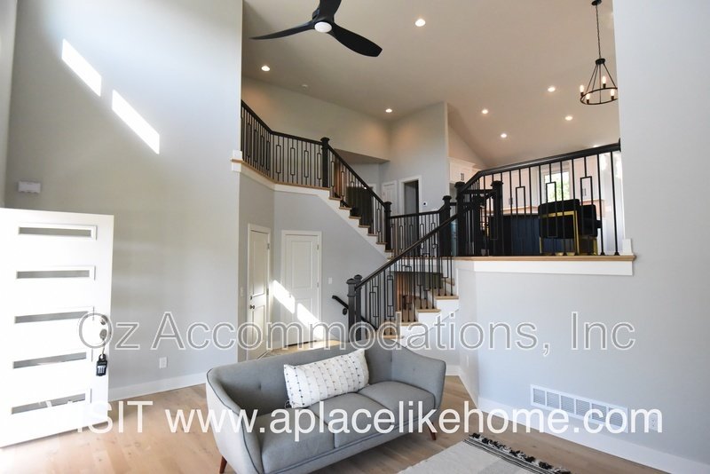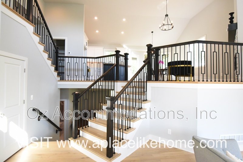 Discover the perfect blend of modern design and natural beauty in this spacious rental featuring a beautifully treed backyard. Enjoy soaring vaulted ceilings and an open floorplan that floods the space with light, thanks to a striking wall of windows.